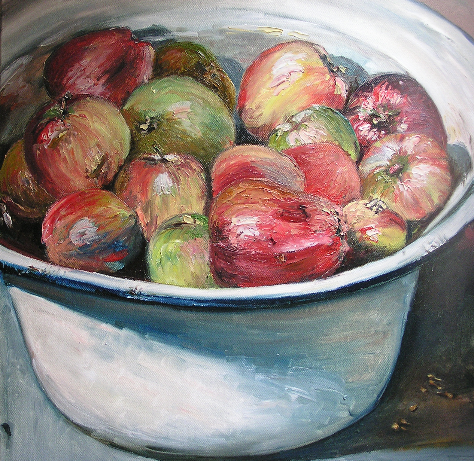 Apples in the washbowl   oil on canvas – 50cm x 50cm – SOLD
